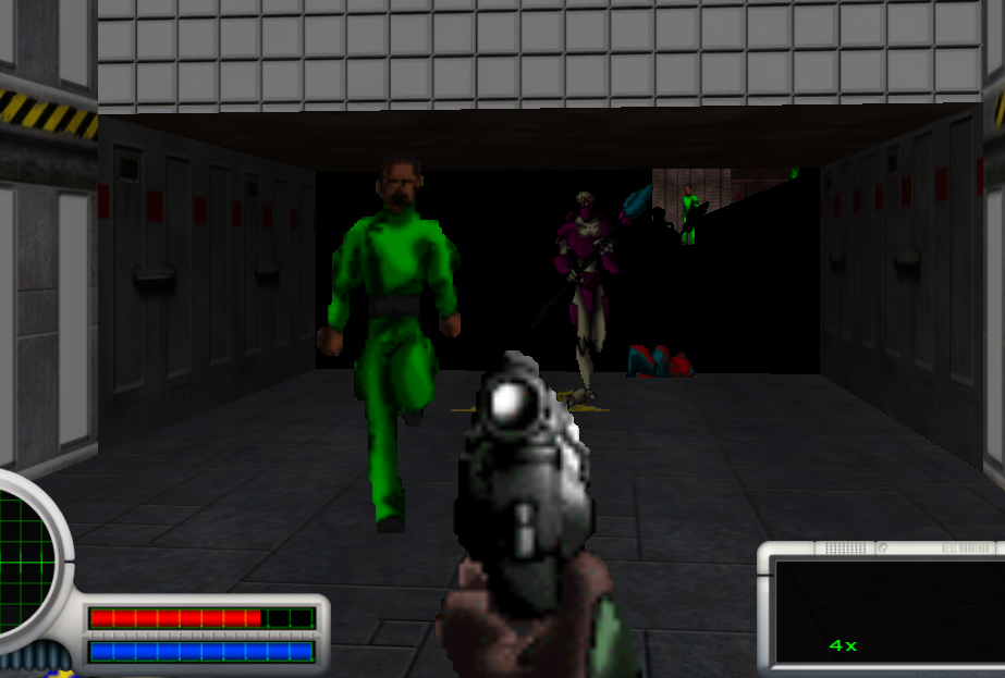 Leela’s sent you to a scene of carnage as the Pfhor have broken into an area where significant numbers of crew were sheltering from the attack, and your objective is simply to save as many as possible. What was broad and abstract becomes immediate. Everything you did prior was to save people’s lives in a larger sense; slowing down the attack, repairing the ship, and so on. In The Rose, for the first time, you actually see the people you’re trying to save, and watch them die when you fail.