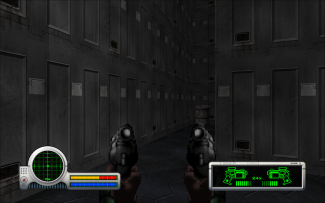 This is what the whole place looks like. It’s some dismal long forgotten part of the ship, dimly lit, sparse, flat. And full of lots of blind corners where Ticks ambush you. They’re about the size of a middling dog, easy to miss, drift quietly toward you and explode. So this level has tons of them on top of everything.